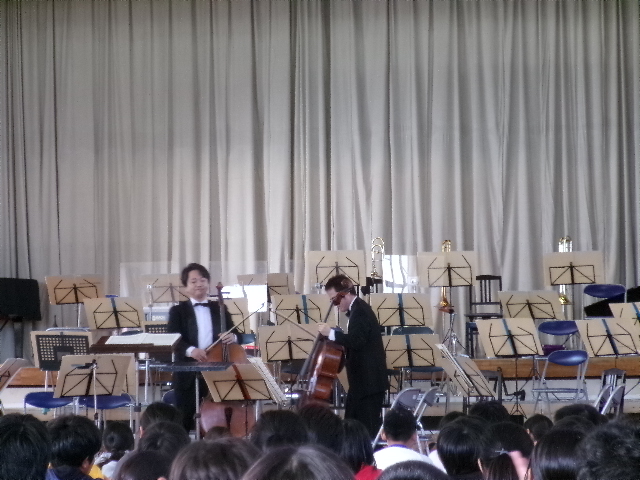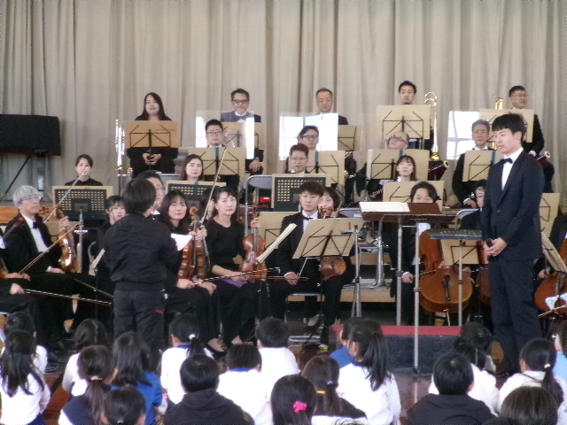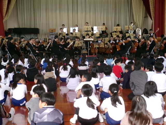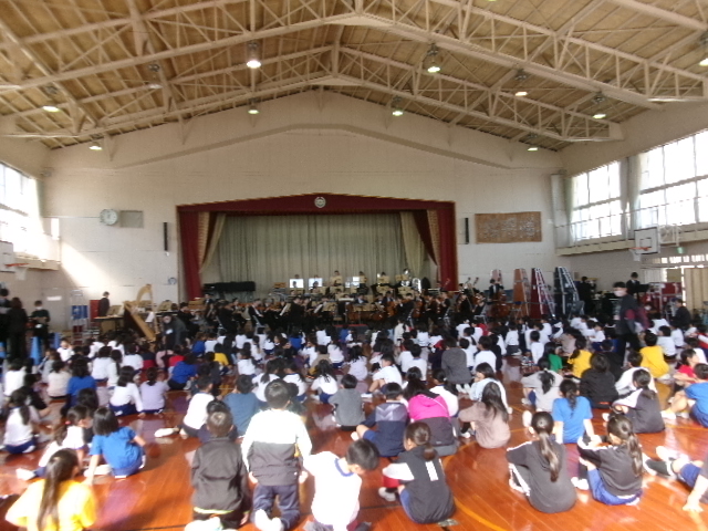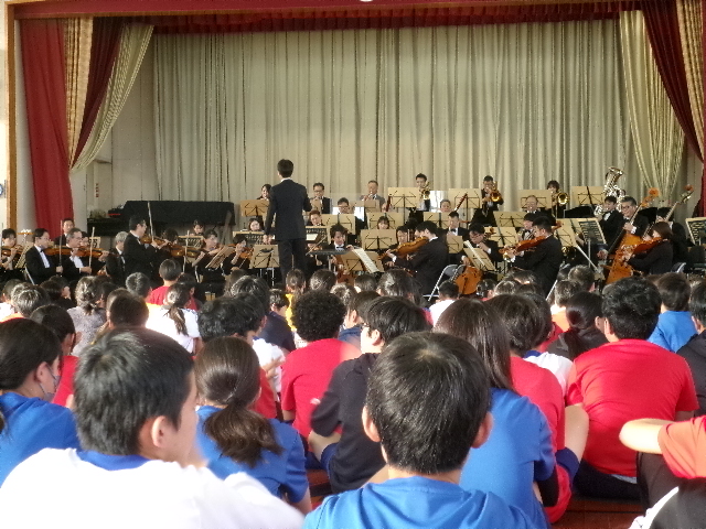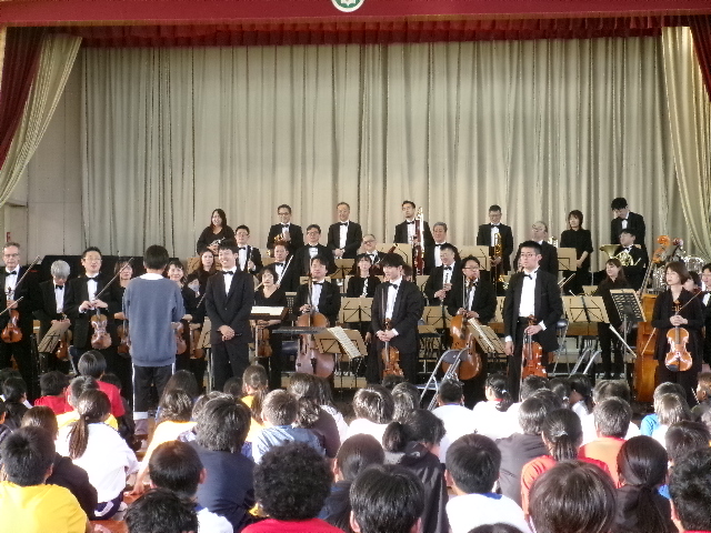 11月14日(金)は、60人編成の札幌交響楽団が来校し、低学年・高学年に分けて2回のコンサートを開いてくださいました。札幌交響楽団は採択中の教科書に掲載されている楽団と知り、子どもたちからは歓声があがりました。鳴き声やリコーダーで参加させていただける曲もあり、ノリノリな様子もかわいかったです。オーケストラ伴奏で歌う校歌は、オケの方も驚く熱唱ぶり。オーケストラの音色に、夢のようなひとときでした。