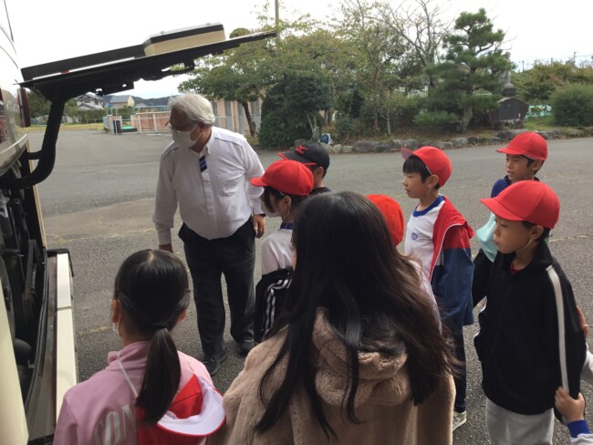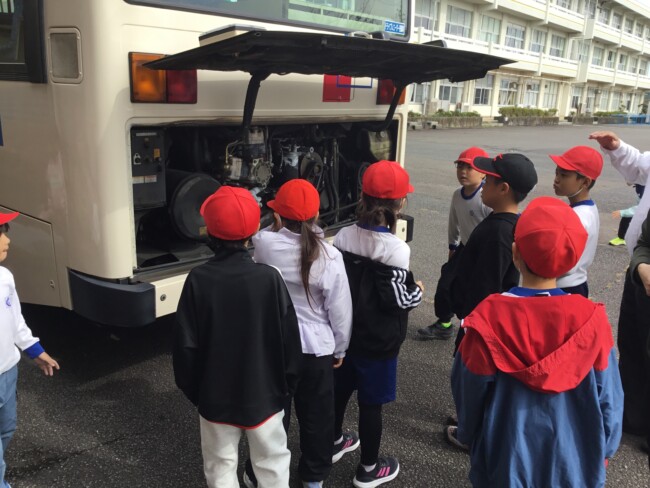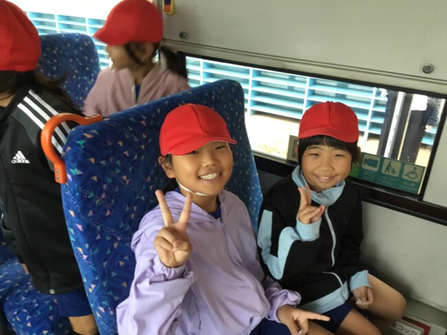 学校にバスがやってきた