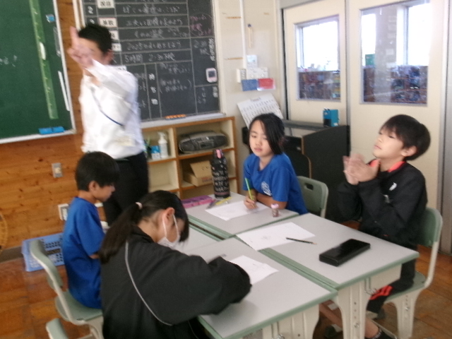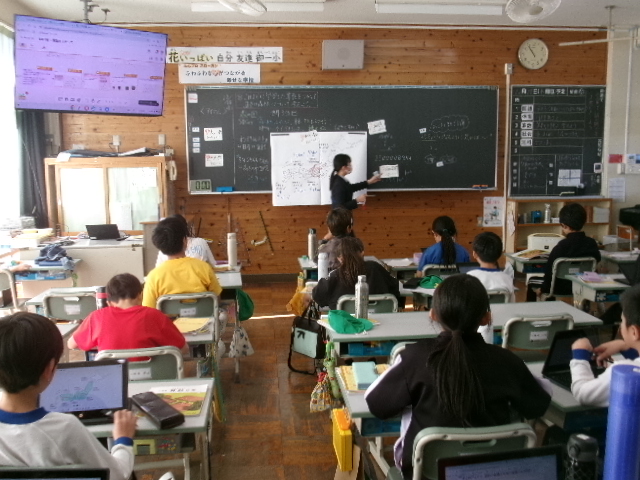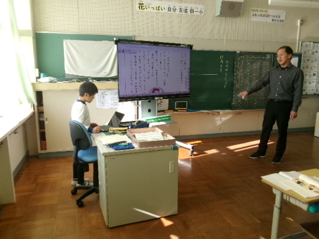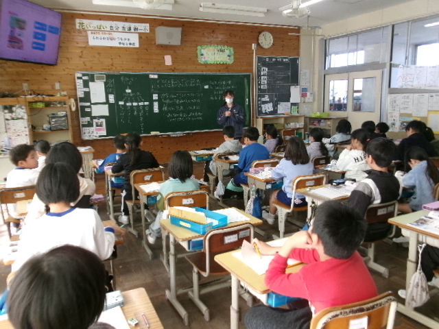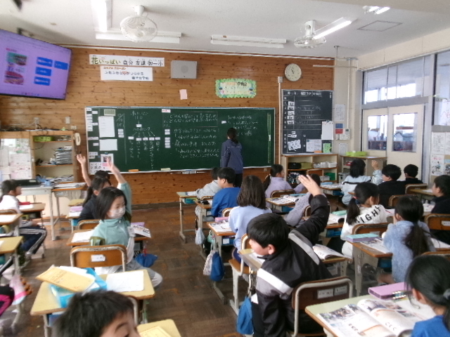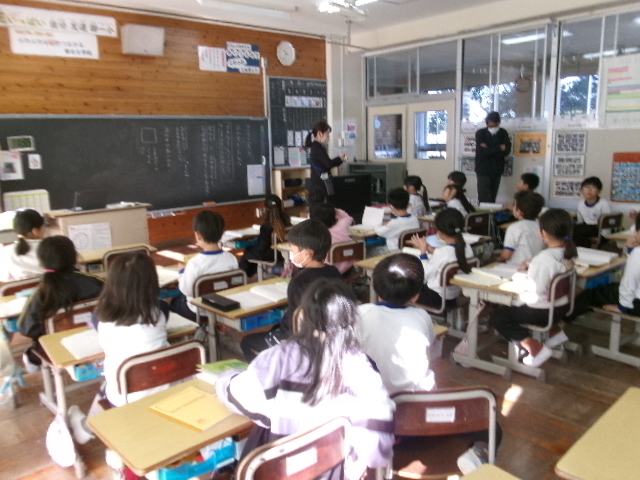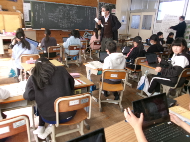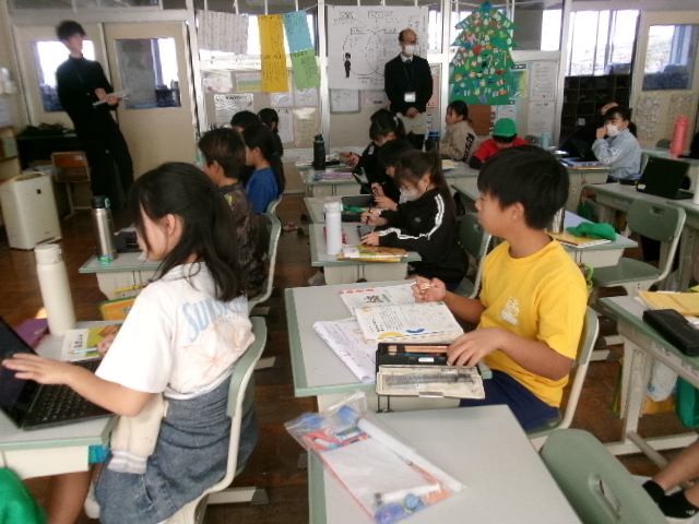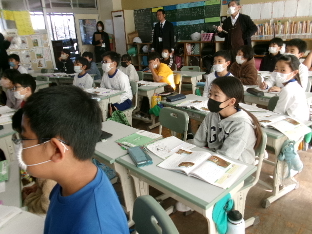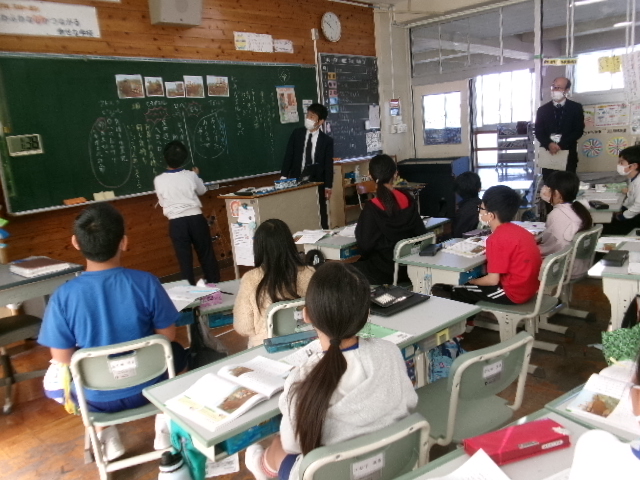職員の研修と5・6年生児童への講話をお願いし、鳴門教育大学教職大学院の久我教授が来校してくださいました。授業参観では、子どもたちの良さをたくさん見つけてほめていただきました。6年生が続けてきた「未来プロジェクト」報告会のすばらしい様子は明日記事にする予定です。