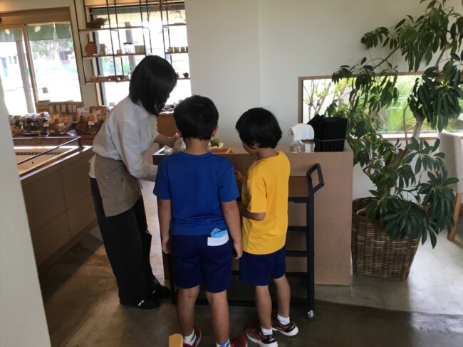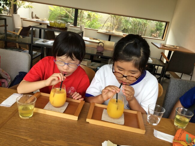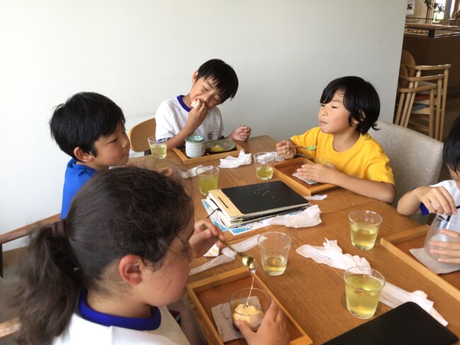 お待たせしました。やまもも2・4組編です。 やまもものみなさんが書いた、まるよ茶屋さんへのお礼のお手紙を紹介します。 (1年Ⅾさん)アイスおいしかったよ。ありがとう。 (2年Aさん)お茶うまかった。おしかった。またくるね。 (3年Mさん)バニラアイスおいしかったです。お店の人がやさしくしてくれてうれしかったです。ぼくたちもカフェがんばるね。 (4年Iさん)お茶やいろいろ用意してくれてありがとうございました。明太子おにぎりとてもおいしかったです。泣けるほどおいしかったです。いろいろ丁寧に準備してくれてありがとうございます。またまるよに行きます。 (5年Hさん)ぼくは、ベーコンチーズを食べて元気百倍になりました。お茶とおにぎりがおいしかったです。ありがとうございました。帰りにおいしかったと言いながら帰りました。 (6年Sさん)メニュー表の絵よりも、のりも具もたくさん入ってて、とてもおいしかったです。サービスのたくわんもおいしかったです。次また行く時も同じ、夢咲牛しぐれを注文します。