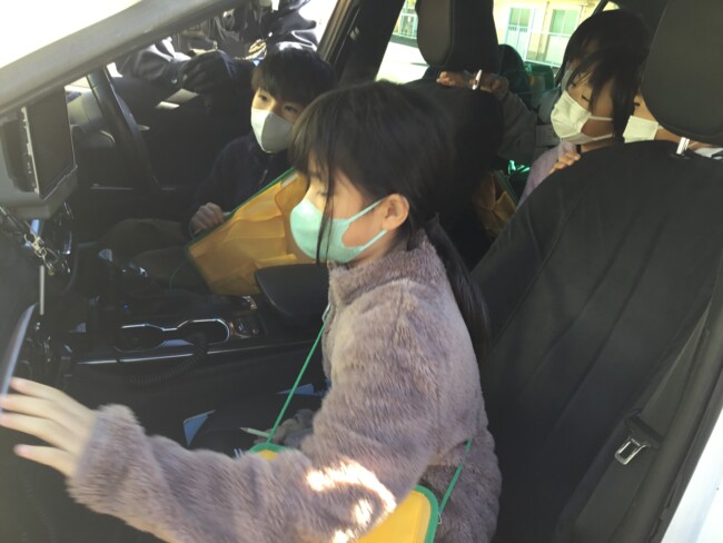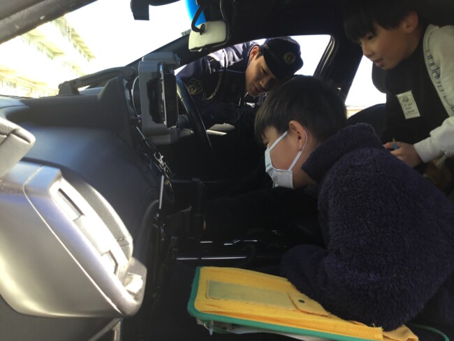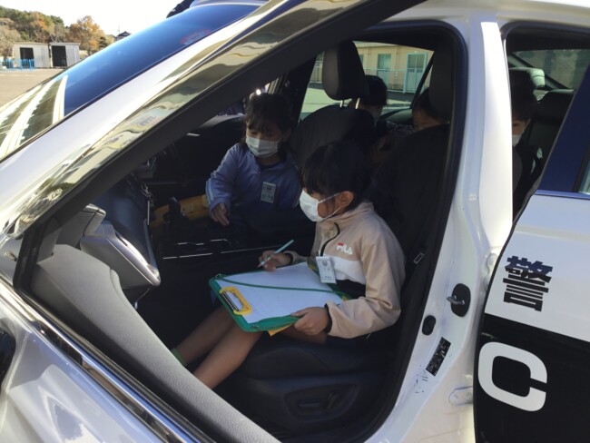 パトカーがやってきた 2025/12/08 12月4日には、警察の方がパトカーと警察車両で学校に出前授業に来てくださいました。子どもたちは、警察の仕事についてのお話を聞いたあと、実際に指紋採取を体験させてもらいました。パトカー見学や中の装備を見せてもらったり、実際の乗ったり、充実した1時間でした。警察のみなさん、ありがとうございました。