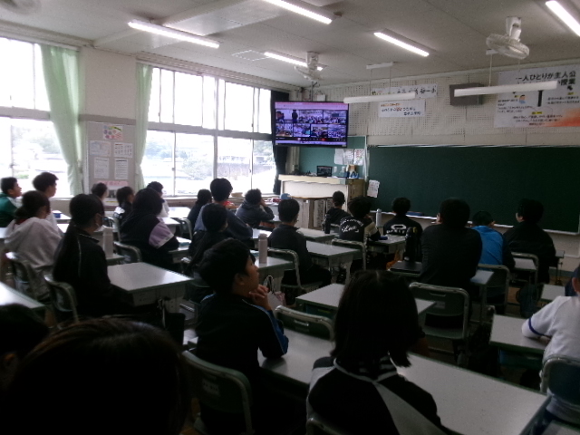 小中交流会 2025/10/28 この日は6年生が、浜岡北小・浜岡東小の6年生とオンライン交流会を行いました。中学校に進学して一緒に学ぶ仲間になります。それぞれの自己紹介や、今後中学生に聞いてみたいことなどの意見交換を行いました。 進行や話を進める運営委員さん 教室のテレビで しんけんに聞いています あと5か月で中学生!