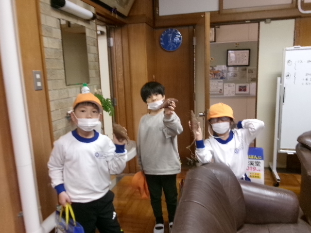 そんな中、収穫したさつまいもを見せに来てくれたひまわり1組さん。