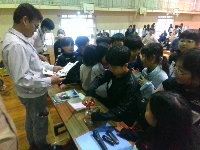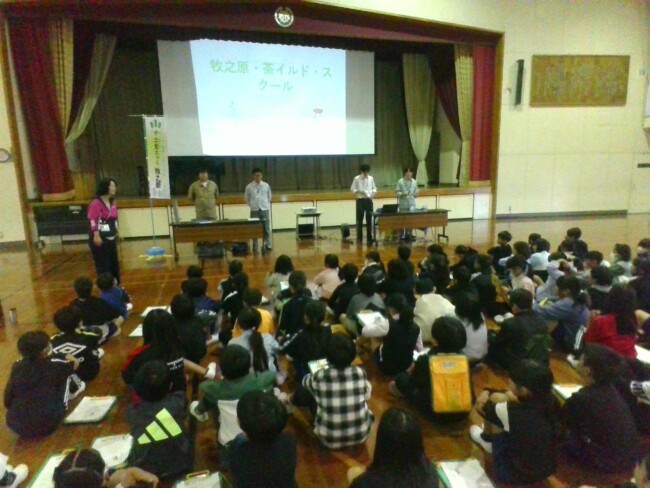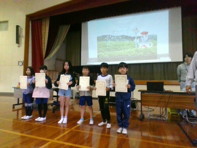 茶いるどスクール3年生 2025/10/23 3年生は県農林事務所、牧之原土地改良区の職員さんから出前授業「茶イルドスクール」を受けました。お茶の作り方、機械のこと、おいしいいれ方などおもにクイズ形式でお話が進みました。 12問のクイズのうち、全問正解者と1問だけ不正解だった子には賞状が、参加者全員にすてきなプレゼントをいただき、子どもたちもほくほくでした。