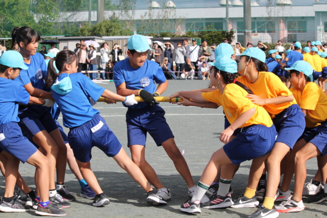 運動会②学年種目特集 2025/10/17 学年種目はまさに協力そのものです。 4年生は二人三脚でしっぽとり「ねらったしっぽは逃さない」。練習の成果で息ぴったりでした。 5年生は力を合わせて、いろんな方法で大玉を運ぶ「みんな大事なONE PIECE」見ごたえありました。 6年生は知恵と工夫とわざと力を結集した棒とり「仲間と協力 うばいとれ!」迫力満点でした。 明日、あさってとまおまおさんで運動会の様子を放映してくださるそうなのでぜひご覧ください。