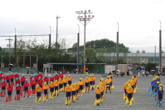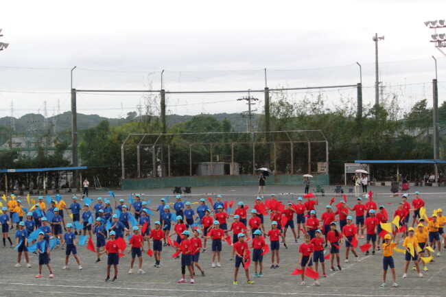運動会④ 5・6年表現 2025/10/19 ざわついていた応援席も静まり、「かっこいい」「すごい」という低学年の子の声が聞こえてきました。今日もまおまおさんで運動会の様子を放映してくださるそうなのでぜひご覧ください。