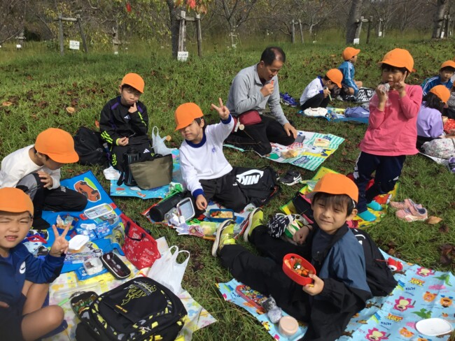 1年生の秋探検 エコパ編 2025/10/30 白砂公園を出た1年生が向かった先は、袋井のエコパです。広い公園をたくさん探検し、 おうちの方が作ってくださったおいしいお弁当を食べ、秋を満喫した1年生です。