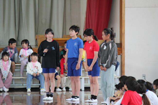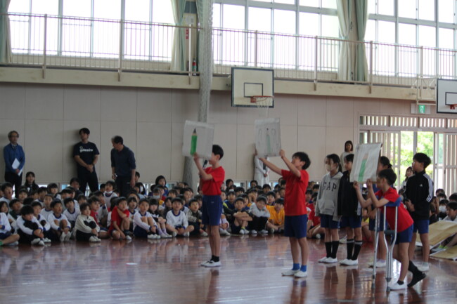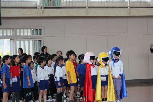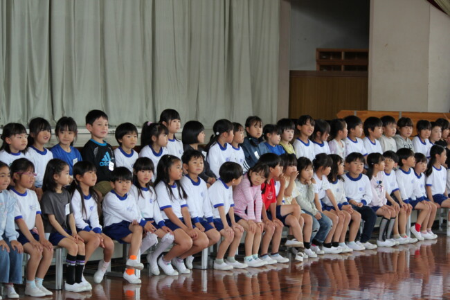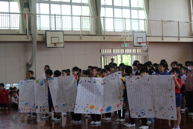 3時間目に行われた「1年生を迎える会」は、ふわふわな心があふれる幸せで楽しい時間になりました。2年生は1年生にペンダントを作ってくれました。3年生は、「おんいちマンの歌」を紹介してくれました。4年生は、第一小学校の校歌を紹介してくれました。5年生は、「えんぴつピン」「かかとピン」「せすじピン」をクイズにして学校紹介をしてくれました。そして、最上級生の6年生は、1年生を教室に迎えに行くところから教室に戻るまで、1年生に気を配りながら全体を進行してくれました。1年生が元気よく自己紹介ができたのは、「1年生のために頑張ろう!」と思う2年生から6年生のふわふわな心のおかげです。