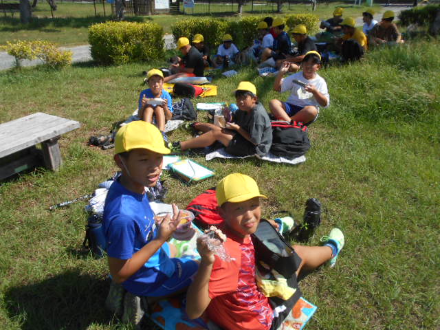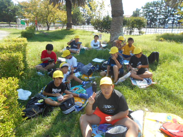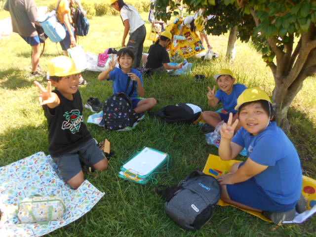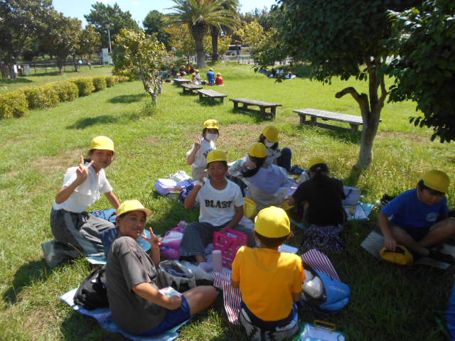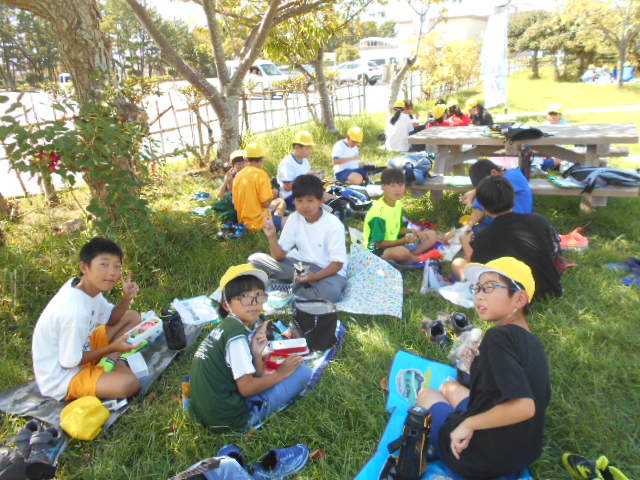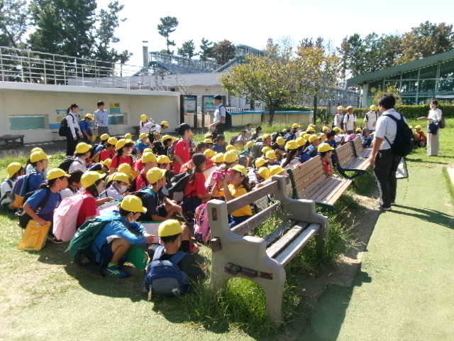 自動車工場でしっかり学んだあとは、渚園でお弁当。そして、ウオットへ。